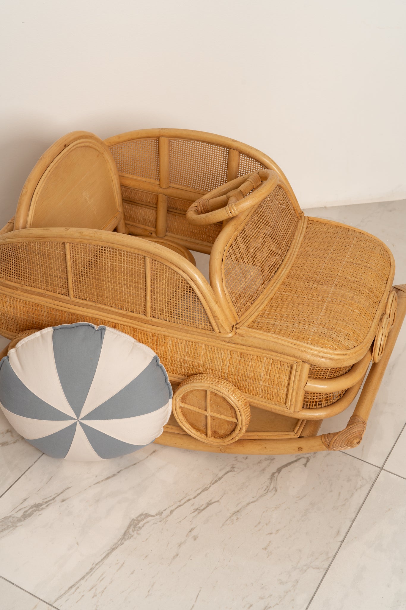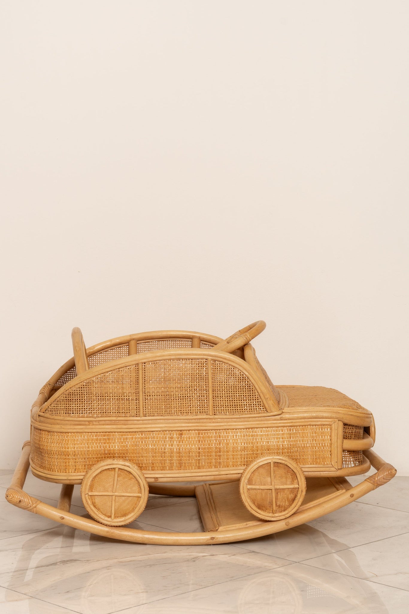 Let your little ones rock with absolute delight in our Ferrari, BMW, WV, and Mercedes-inspired rattan car bounce. 100% natural and sustainable handcrafted by our artisans.
