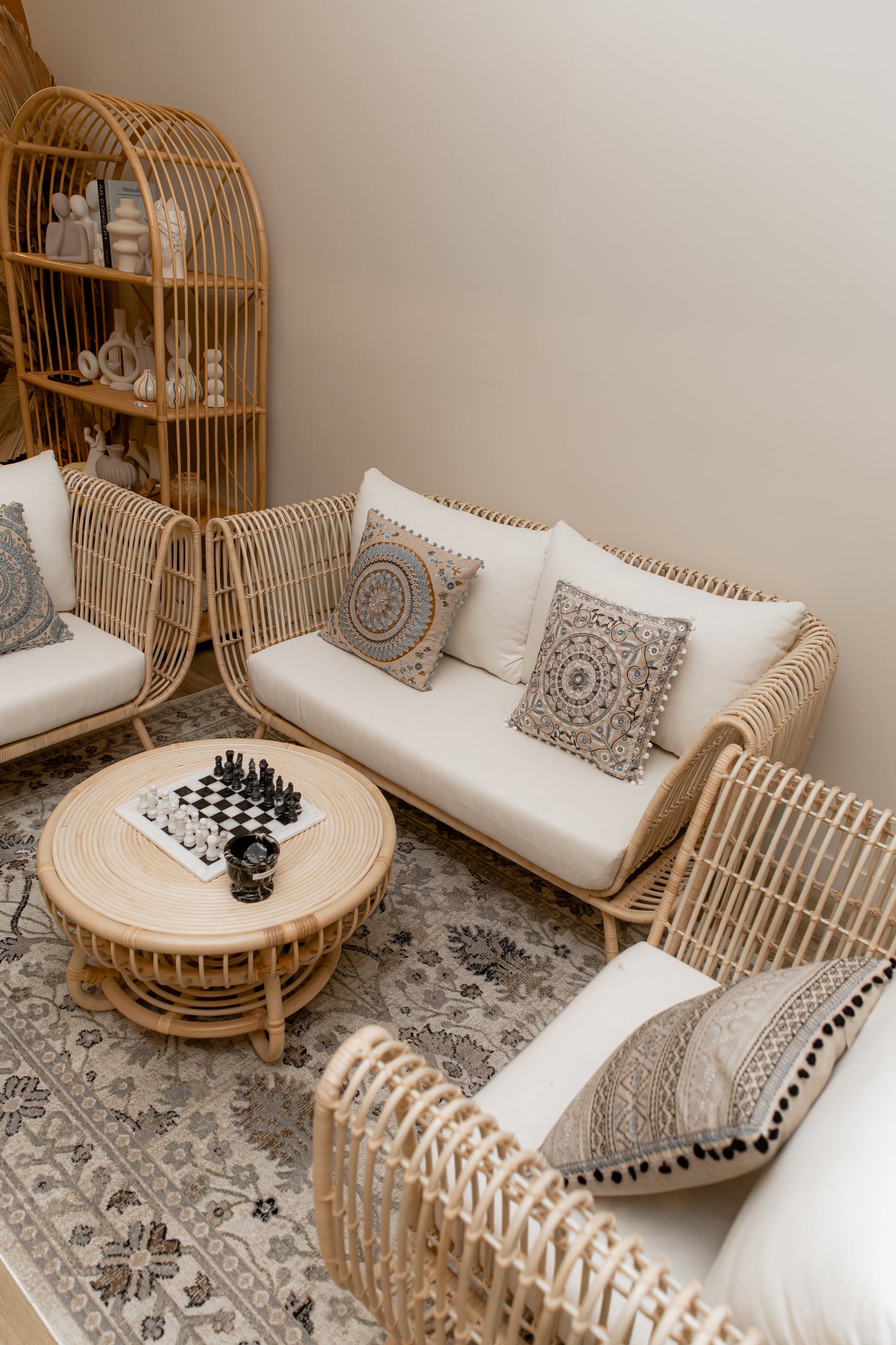 CARE: Wipe clean with a soft, dry, lint-free cloth. Avoid placing rattan furniture in environments with excessive humidity, direct sunlight, and a wet atmosphere.