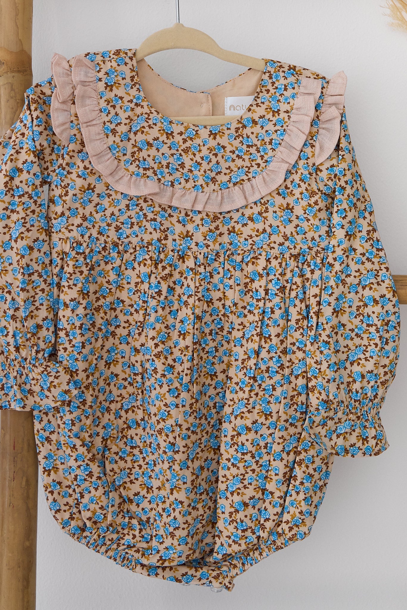 Natura Cotton & Linen Blue Floral Romper – Natura Living Dubai