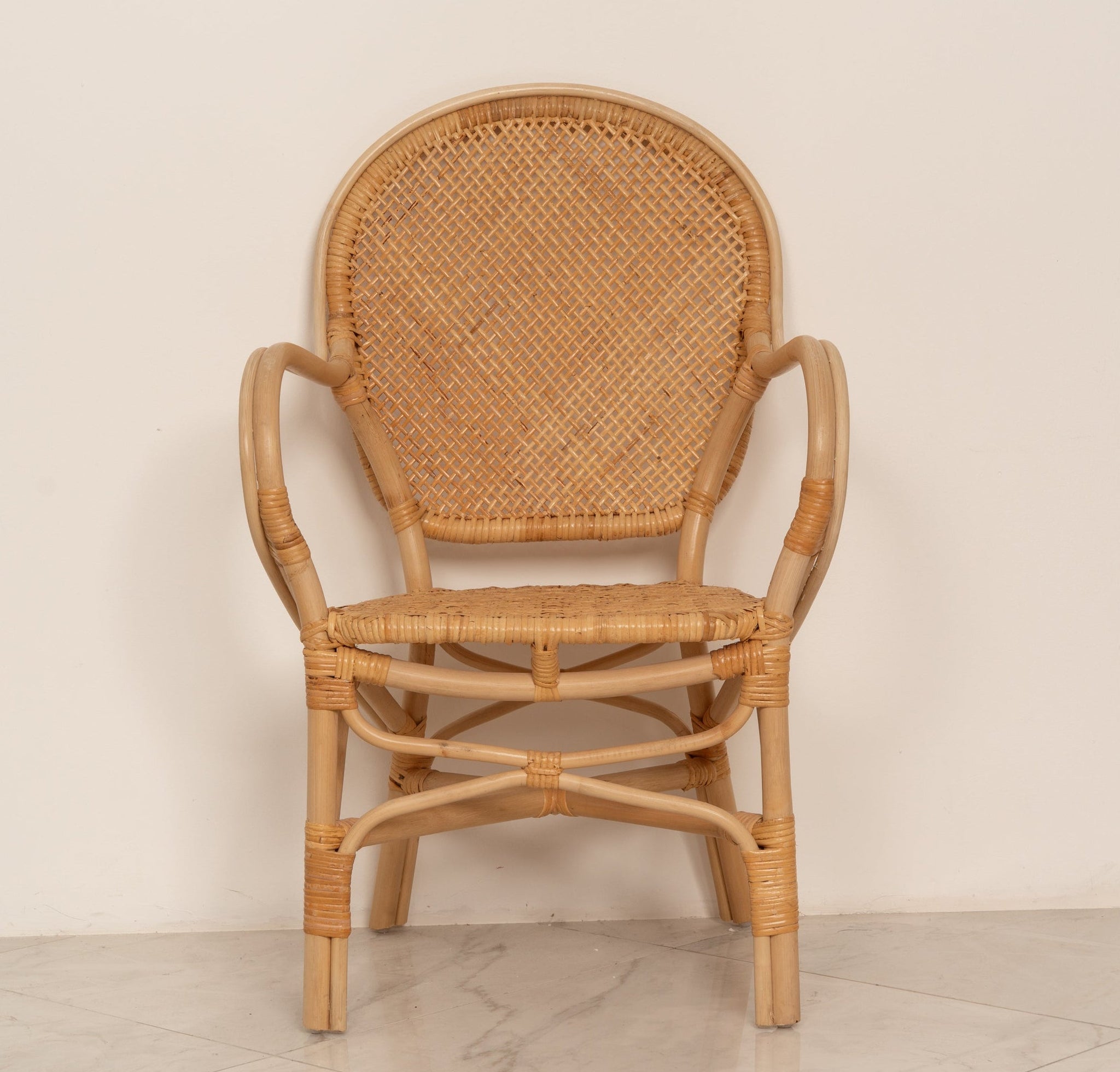 The Rosini Dining Chair is an inspired piece featuring elegant rattan weaving and a warm, natural look. Handwoven rattan over a solid hardwood frame highlights the wood’s beautiful natural grain.