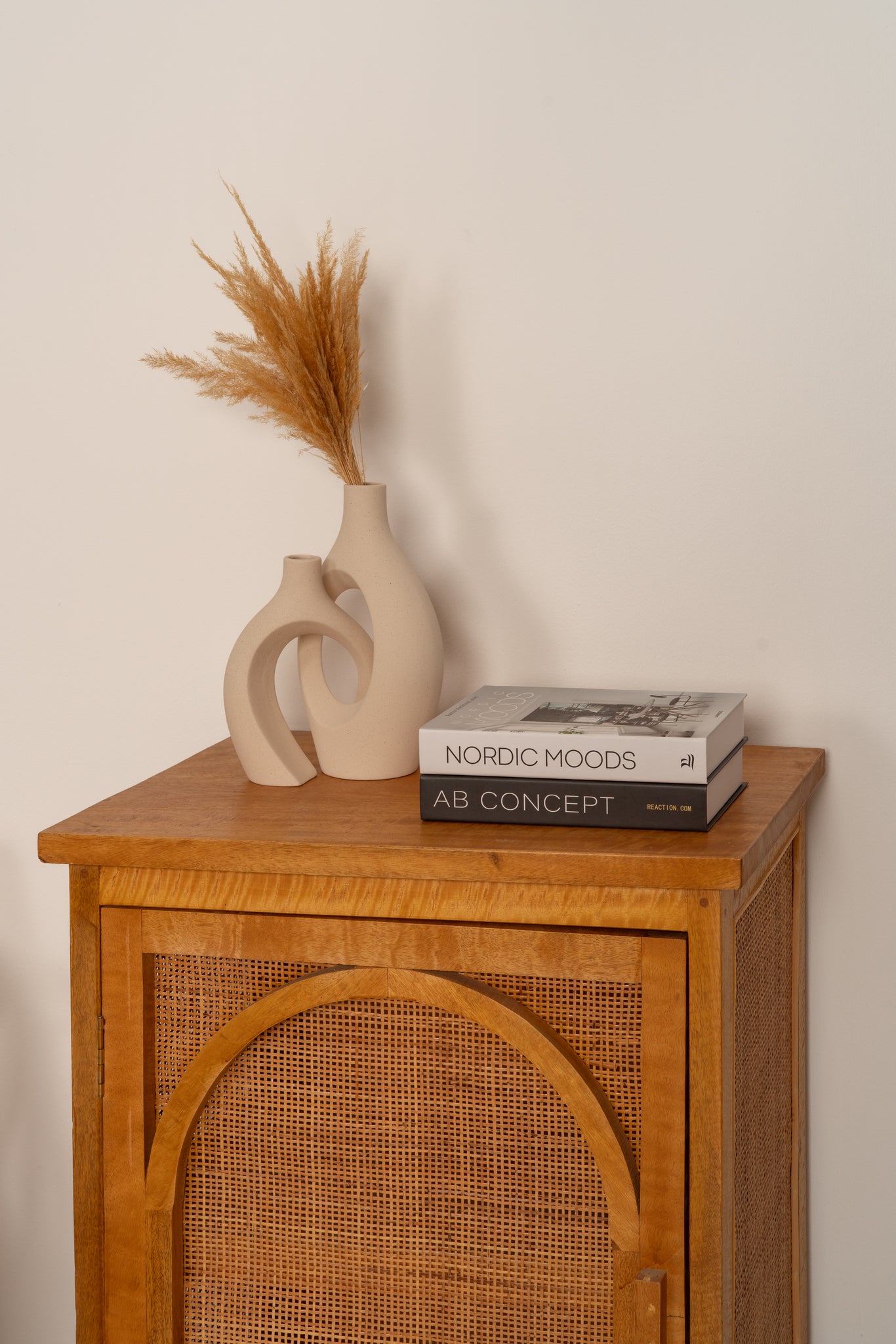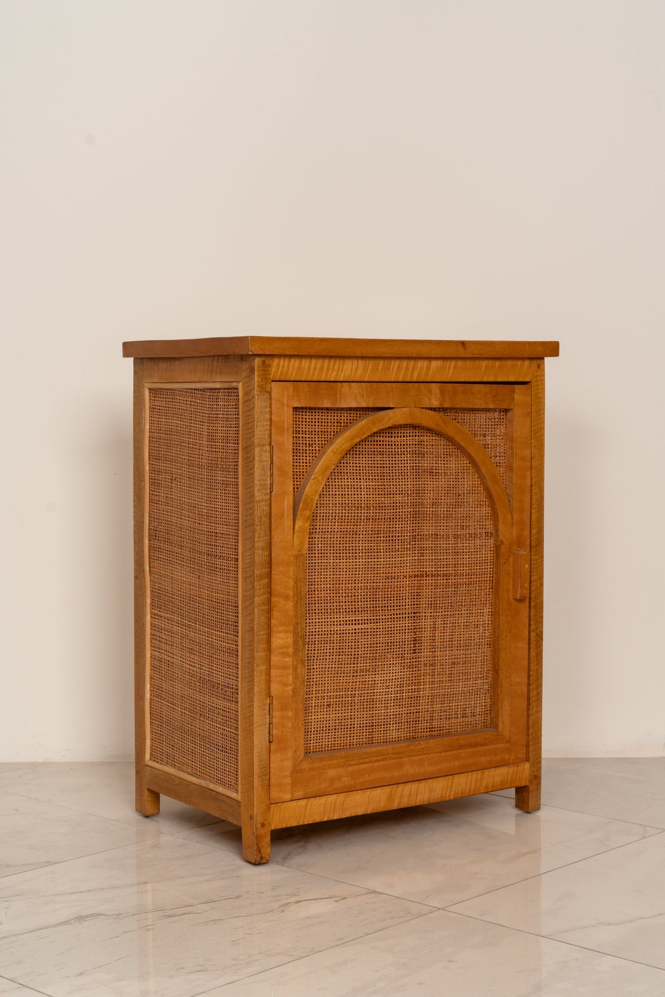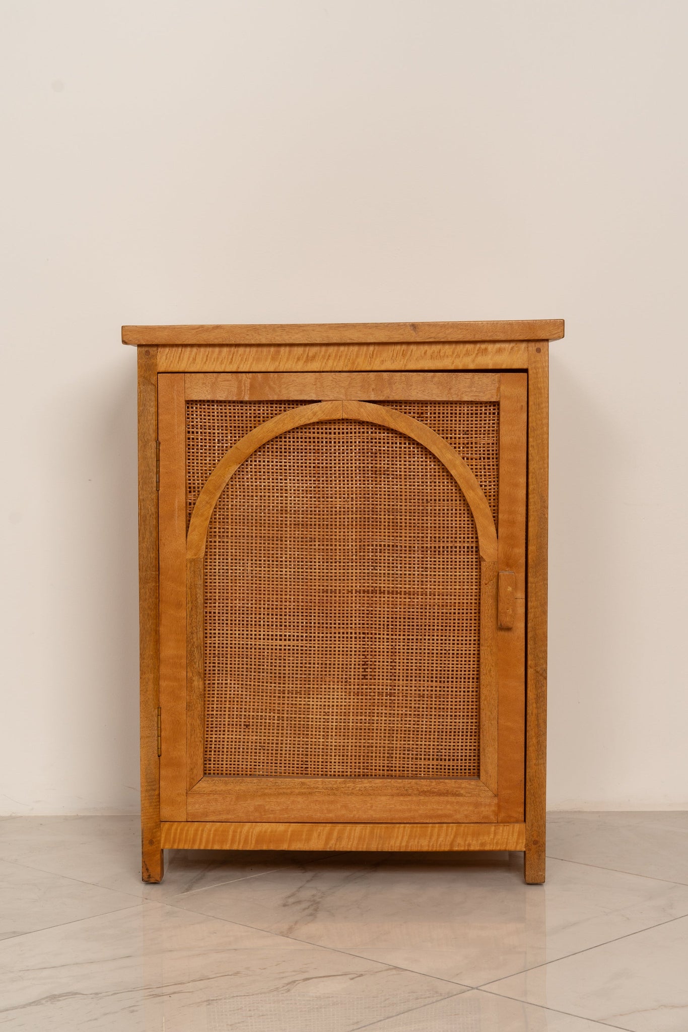 With its thoughtfully designed layout, the Estelle Cabinet offers both functionality and beauty. Equipped with one spacious cupboard and two internal shelves, it provides ample storage space for your bedside or living room essentials, keeping your space organized and clutter-free. Crafted with exquisite attention to detail, this side table boasts an elegant, arched rattan front, infusing your space with timeless charm and style.